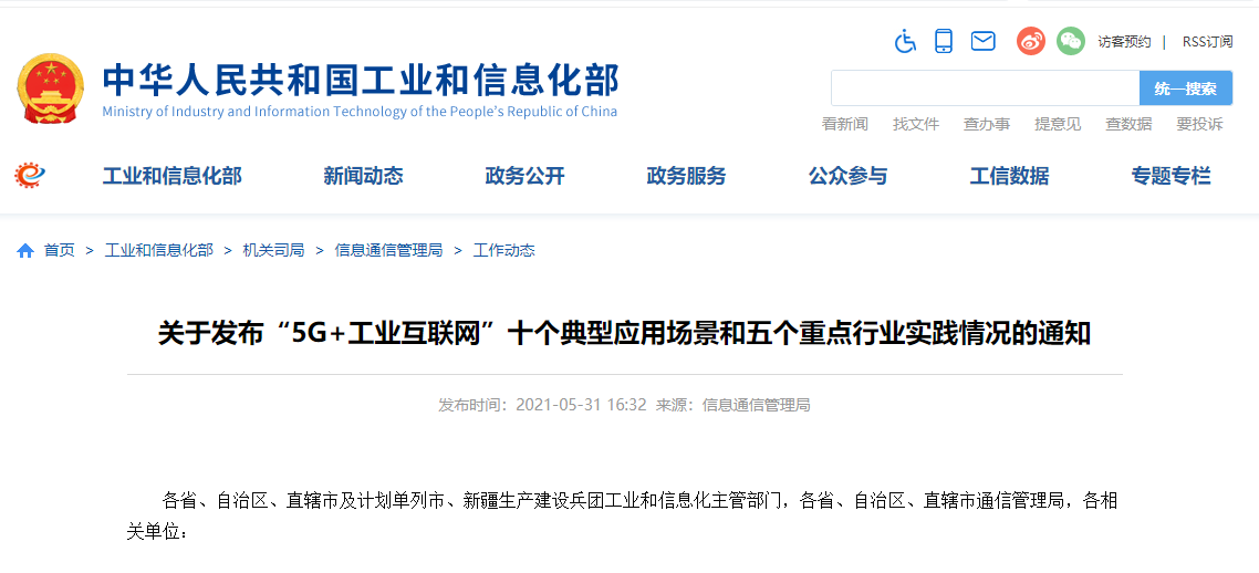 工信部发布“5G+工业互联网”十个典型应用场景和五个重点行业实践情况