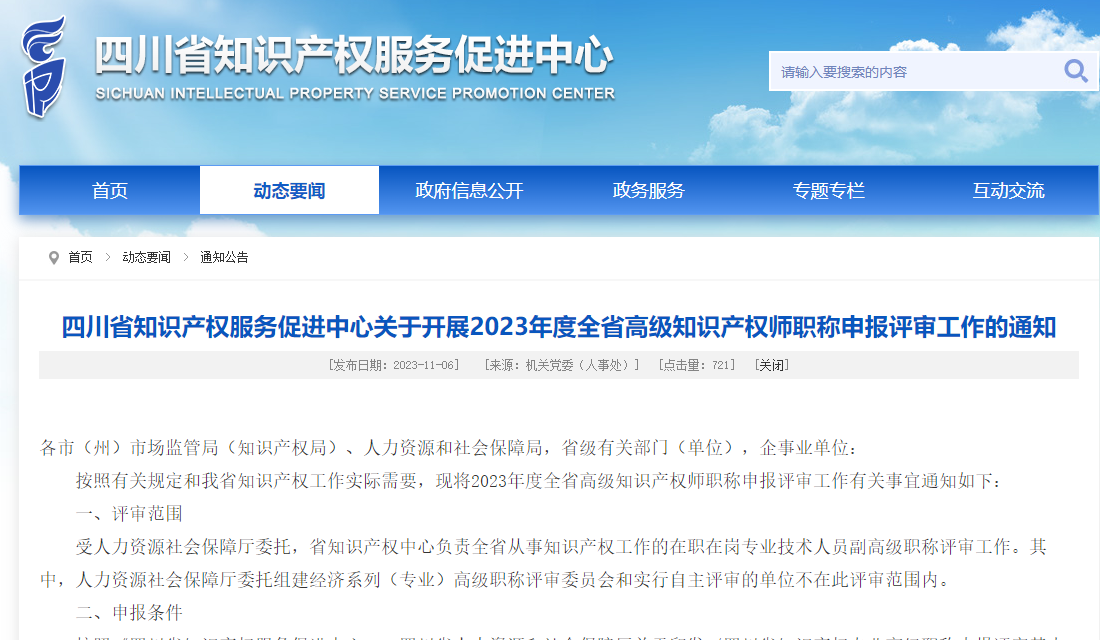 四川省知识产权服务促进中心关于开展2023年度全省高级知识产权师职称申报评审工作的通知