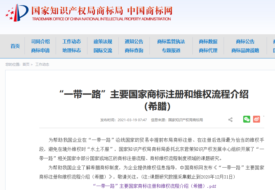 来源:国家知识产权局商标局网站(版权归原作者所有,本文仅供交流学习,部分文章推时未能及时与原作者取得联系,若来源标注错误或侵犯到您的权益,烦请告知,我们将立即删除)封面图片来自网络近日,国家知识产权局商标局网站发布了“一带一路”主要国家商标注册和维权流程介绍(希腊),详情如下。为帮助我国企业在“一带一路”沿线国家的贸易......