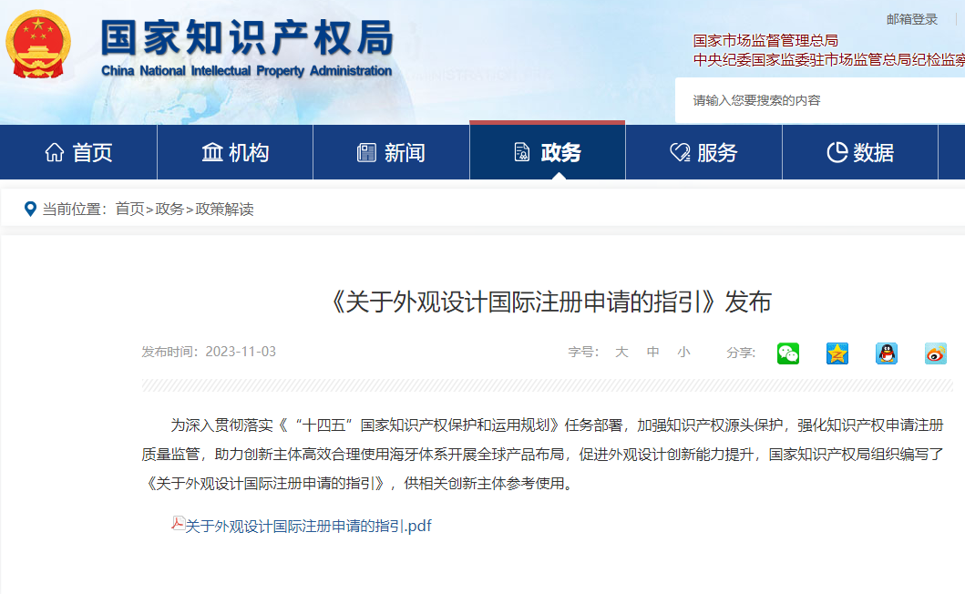 国知局发布《关于外观设计国际注册申请的指引》!