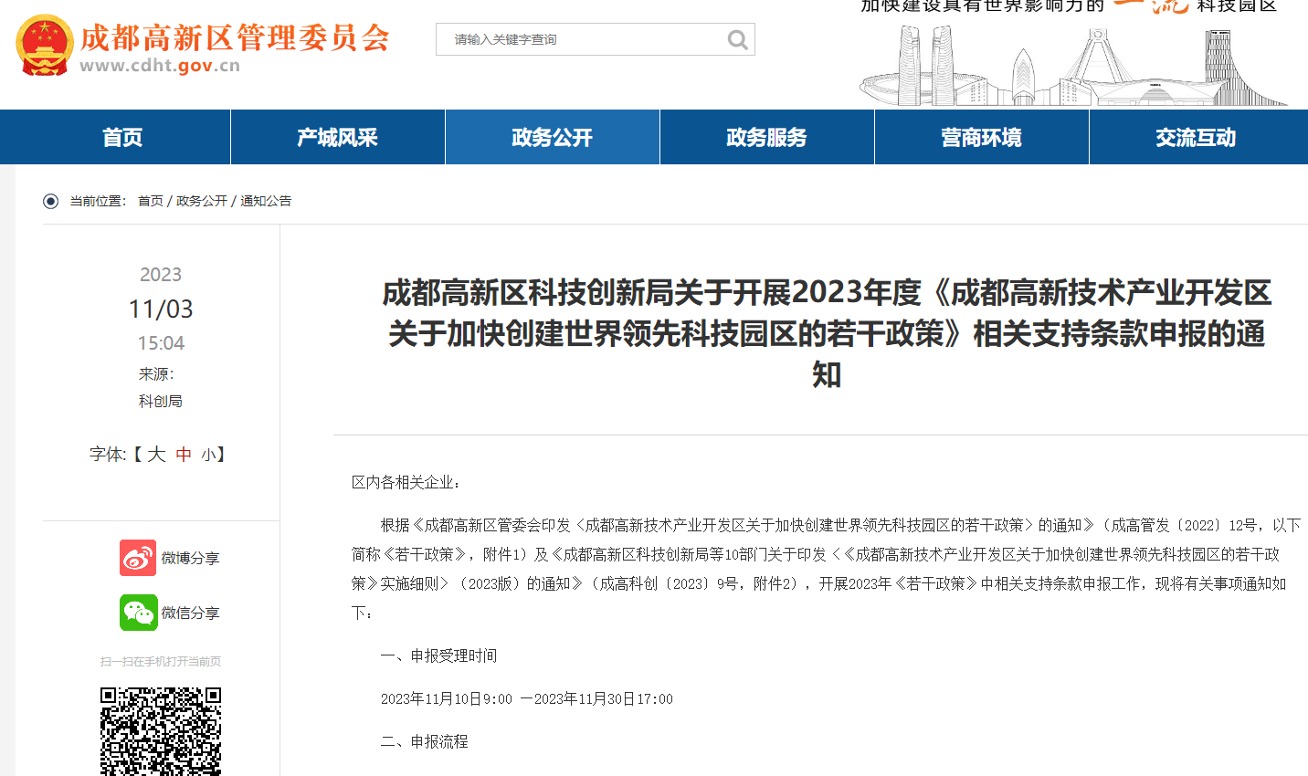 成都市高新区关于开展2023年度《成都高新技术产业开发区关于加快创建世界领先科技园区的若干政策》相关支持条款申报的通知