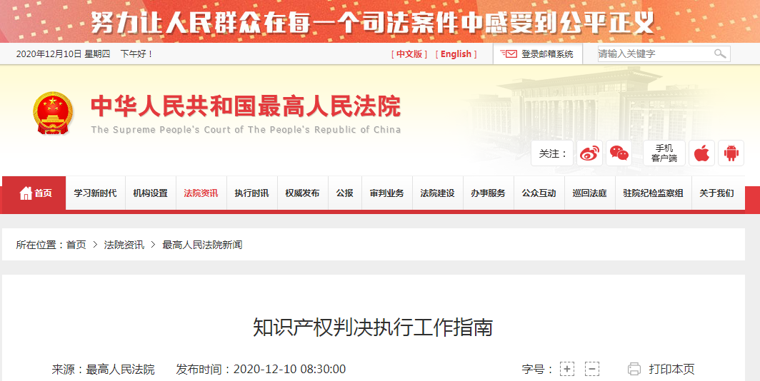 最高院:知识产权判决执行工作指南和实施计划