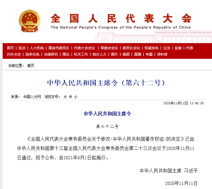 《中华人民共和国著作权法》2020全文