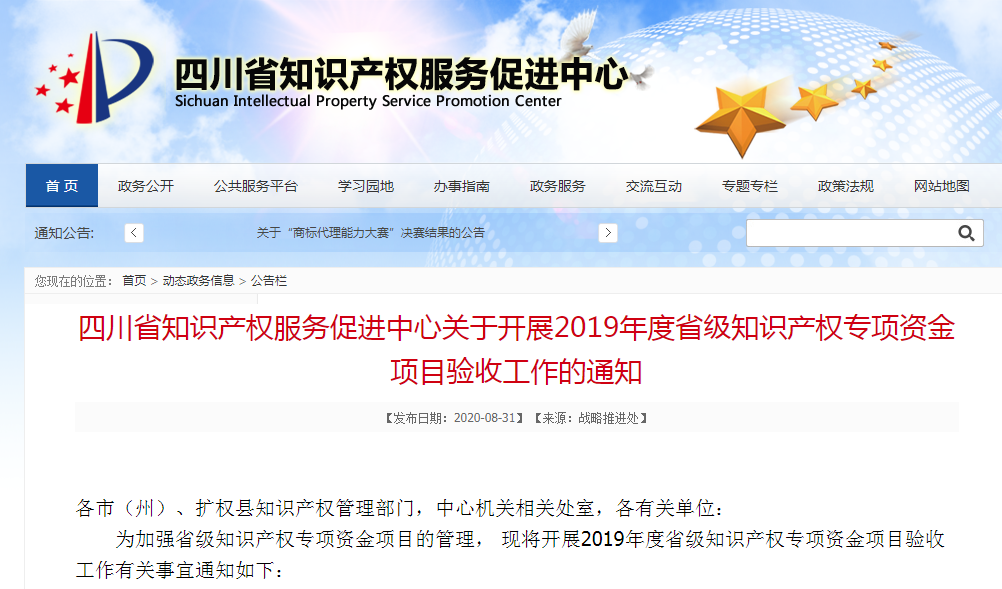 四川省知识产权服务促进中心关于开展2019年度省级知识产权专项资金项目验收工作的通知