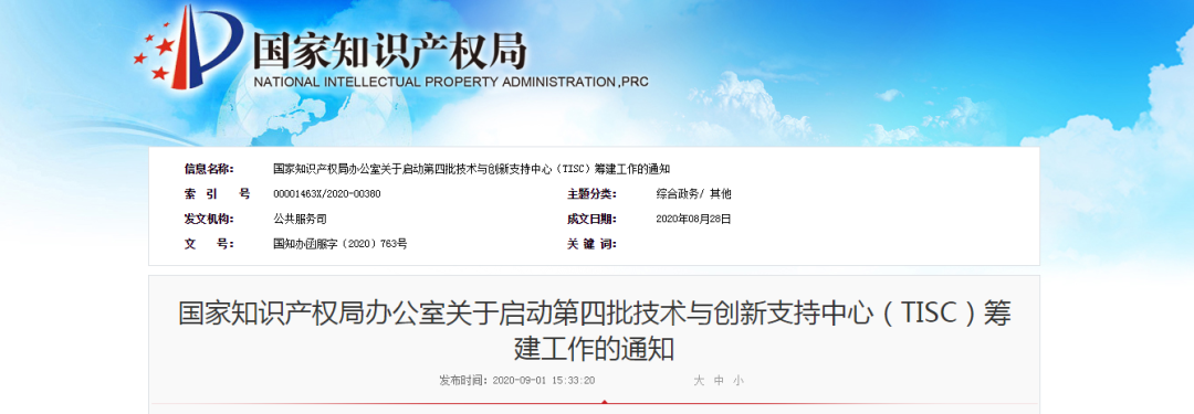 国知局:启动第四批技术与创新支持中心(TISC)筹建工作的通知(附筹建机构名单)