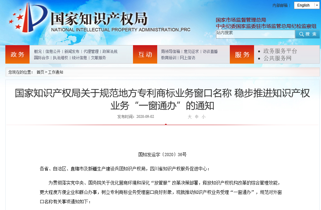 国家知识产权局关于规范地方专利商标业务窗口名称 稳步推进知识产权业务“一窗通办”的通知