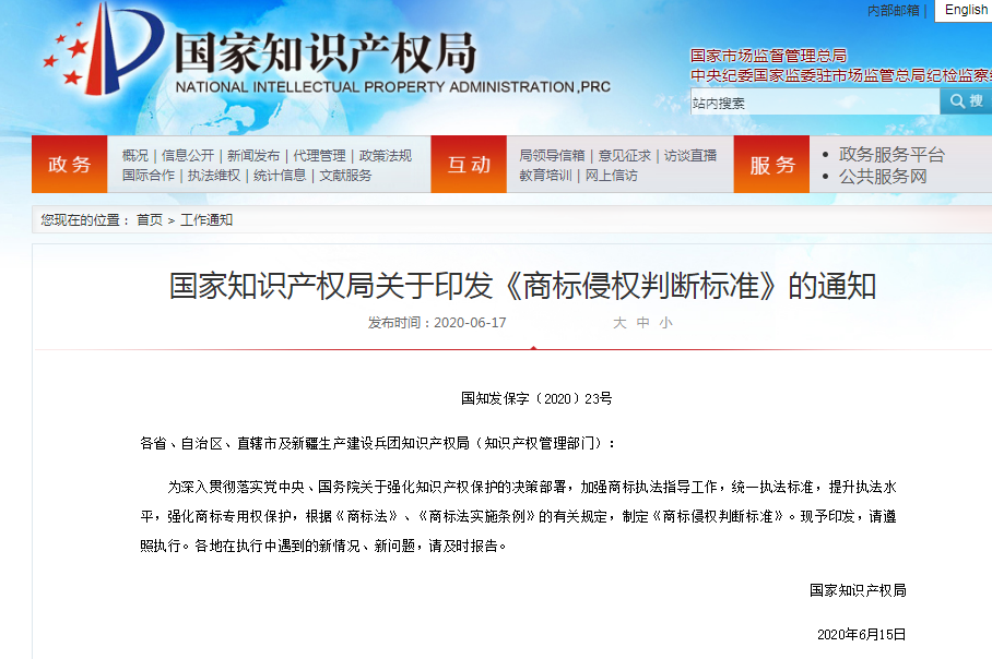 国家知识产权局关于印发《商标侵权判断标准》的通知