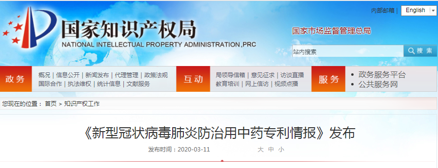 【关注】《新型冠状病毒肺炎防治用中药专利情报》发布