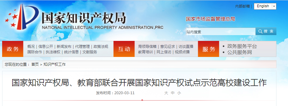 【关注】国家知识产权局、教育部联合开展国家知识产权试点示范高校建设工作