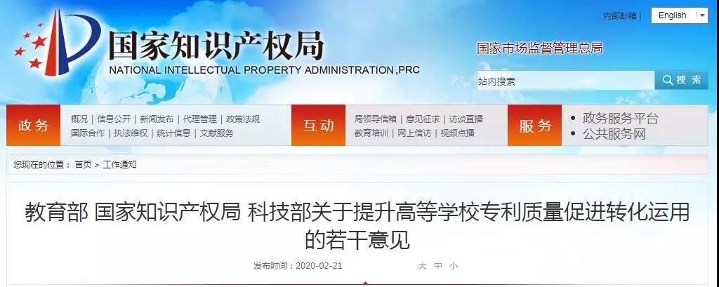 教育部 国家知识产权局 科技部 关于提升高等学校专利质量促进转化运用的若干意见
