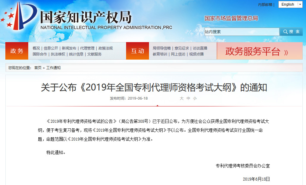 【分享】通知!国知局《2019年全国专利代理师资格考试大纲》发布