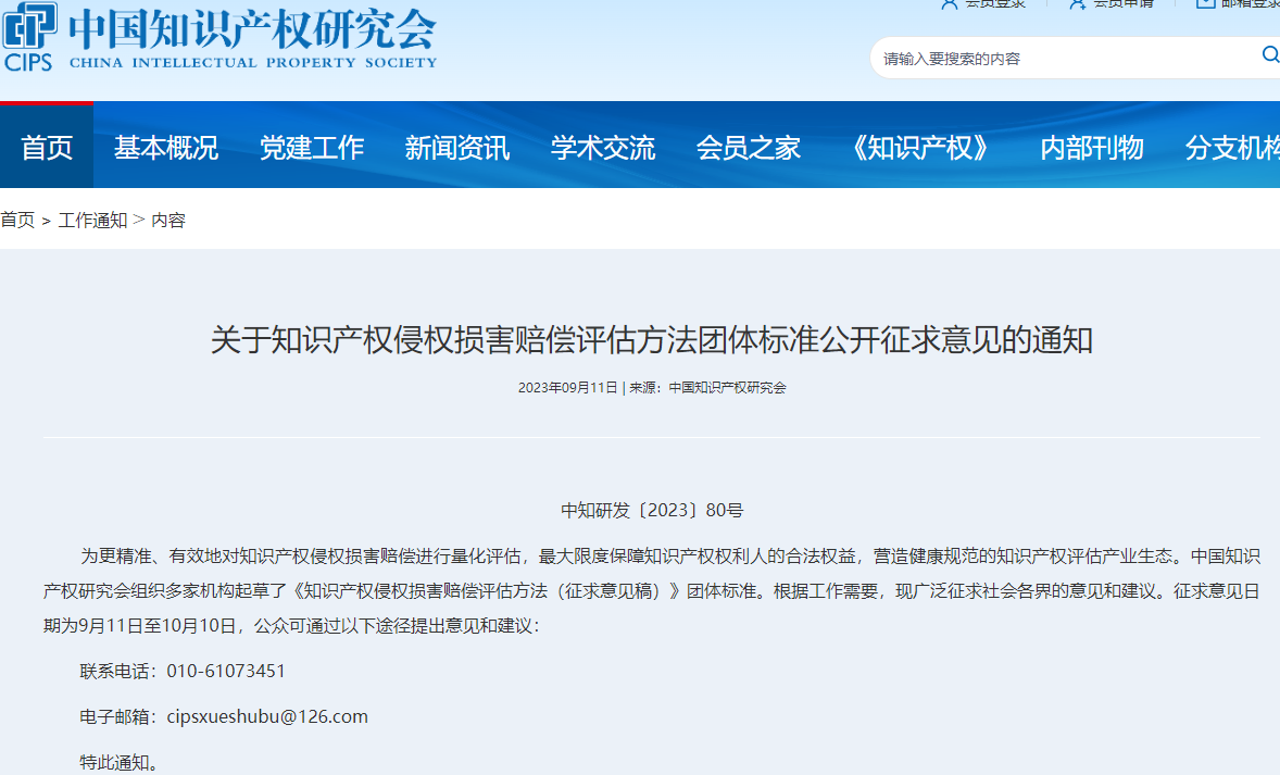 关于知识产权侵权损害赔偿评估方法团体标准公开征求意见的通知