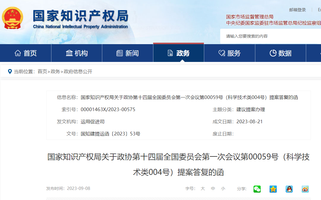 国知局:发挥知识产权要素在中小企业创新发展中的作用的提案答复