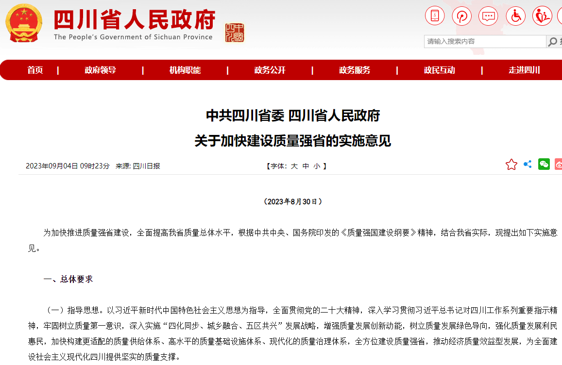 中共四川省委 四川省人民政府关于加快建设质量强省的实施意见