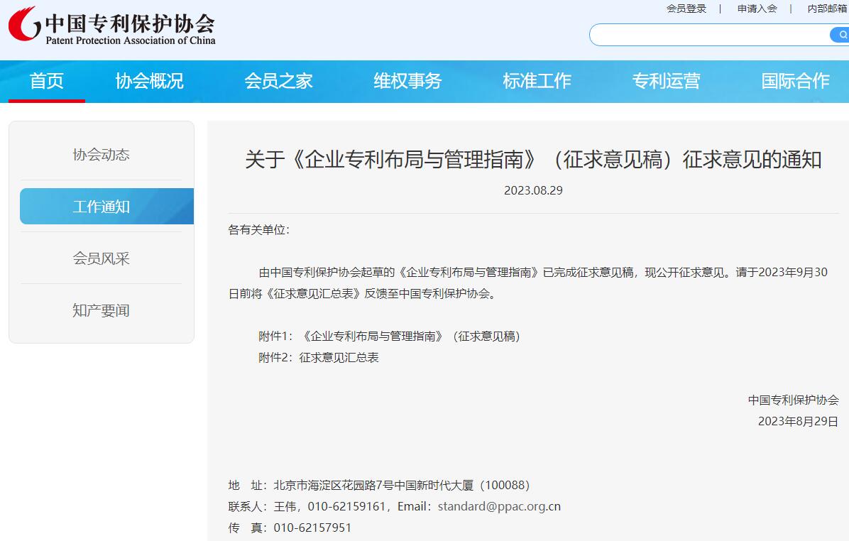 《企业专利布局与管理指南》(征求意见稿)全文发布!