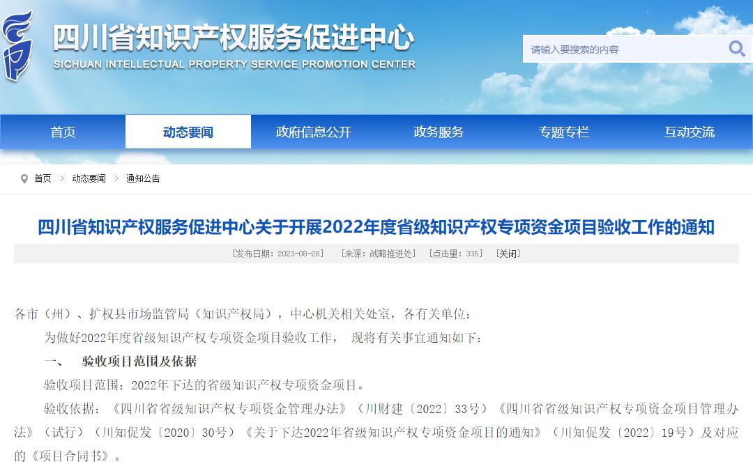 四川省知识产权服务促进中心 关于开展2022年度省级知识产权专项资金项目验收工作的通知