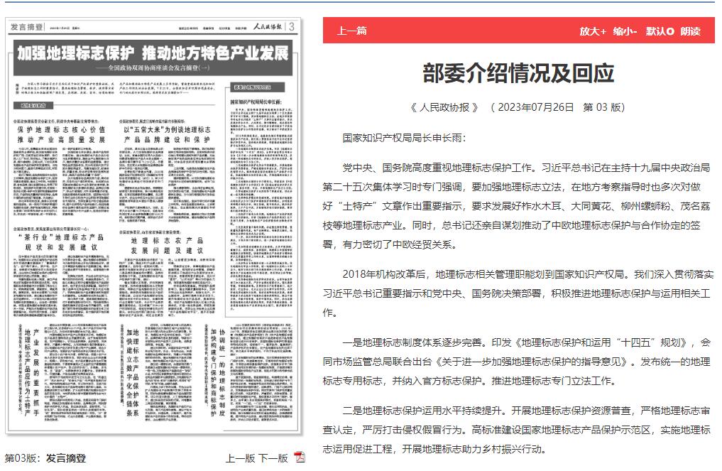 国家知识产权局局长申长雨在十四届全国政协第八次双周协商座谈会上的发言