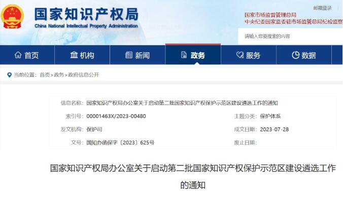 国知局:第二批国家知识产权保护示范区建设遴选工作开始!