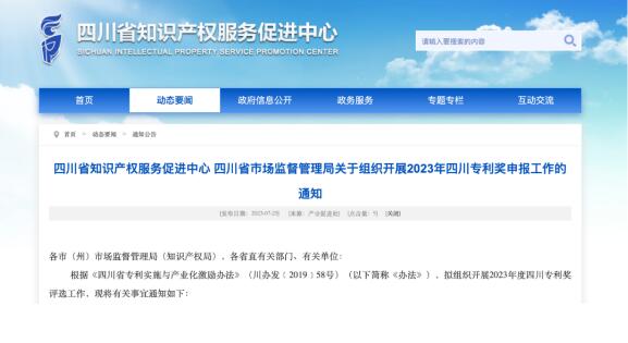 2023年四川专利奖开始申报,线上填报截至2023年8月28日。哪些可以申报?如何申报?近日发布的《四川省知识产权服务促进中心...