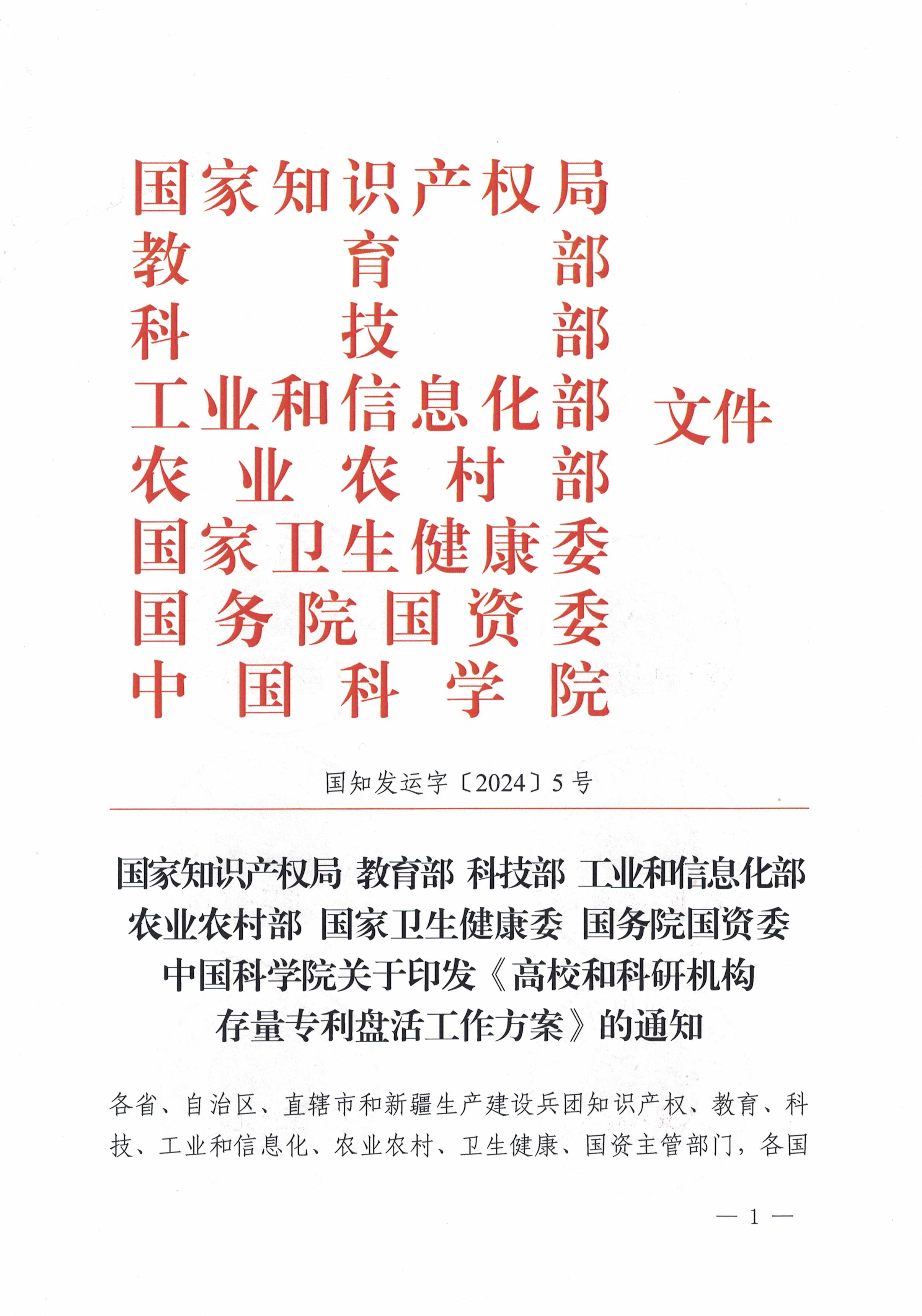 国知发办字〔2024〕8号各省、自治区、直辖市和新疆生产建设兵团党委宣传部,法院,检察院,外事办公室,发展改革委,教育厅(委、局),科技厅(委、局),工业和信息化主管部门,公安厅(局),司法厅(局),农业农村厅(委),商务主管部门,文化和旅游厅(局),卫生健康委,国资委(局),海关总署广东分署、各直属海关...