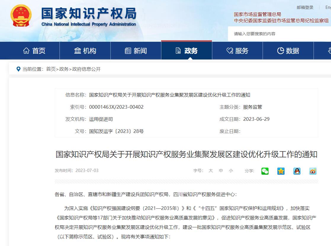 关于开展知识产权服务业集聚发展区建设优化升级工作的通知
