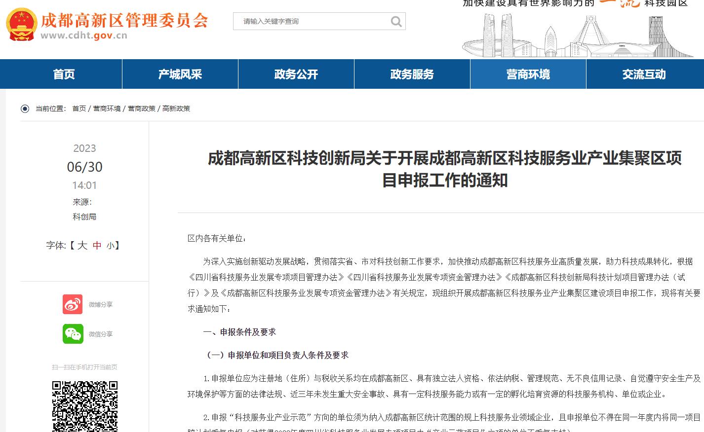 成都高新区科技创新局关于开展成都高新区科技服务业产业集聚区项目申报工作的通知