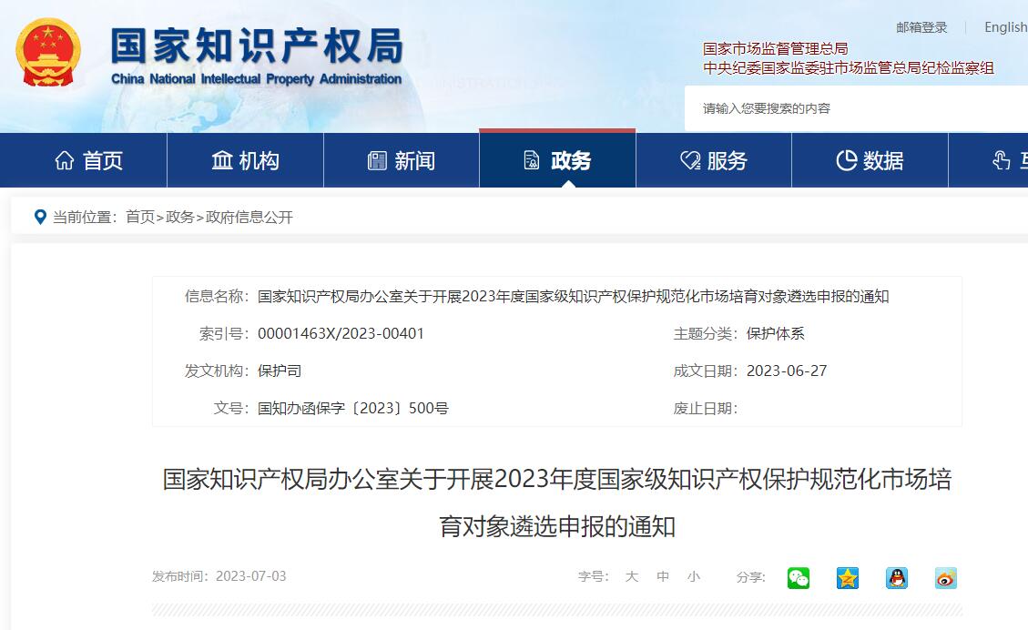 2023年度国家级知识产权保护规范化市场培育对象遴选申报工作启动