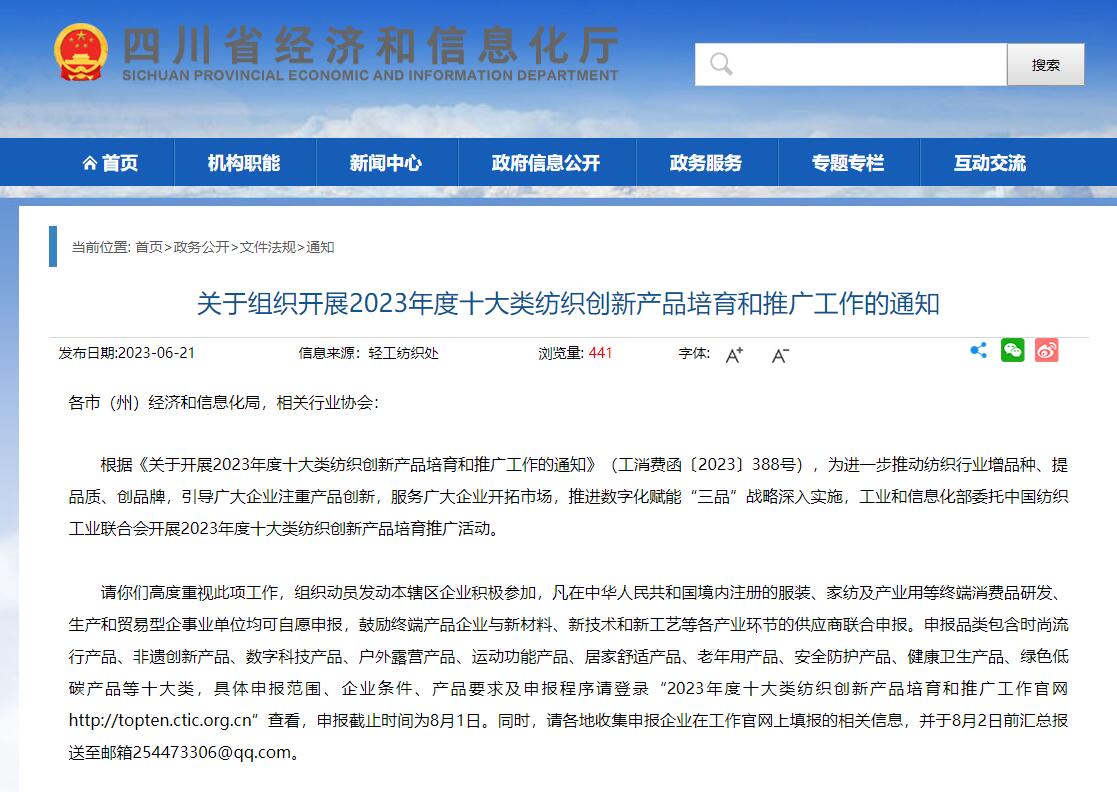 关于组织开展2023年度十大类纺织创新产品培育和推广工作的通知