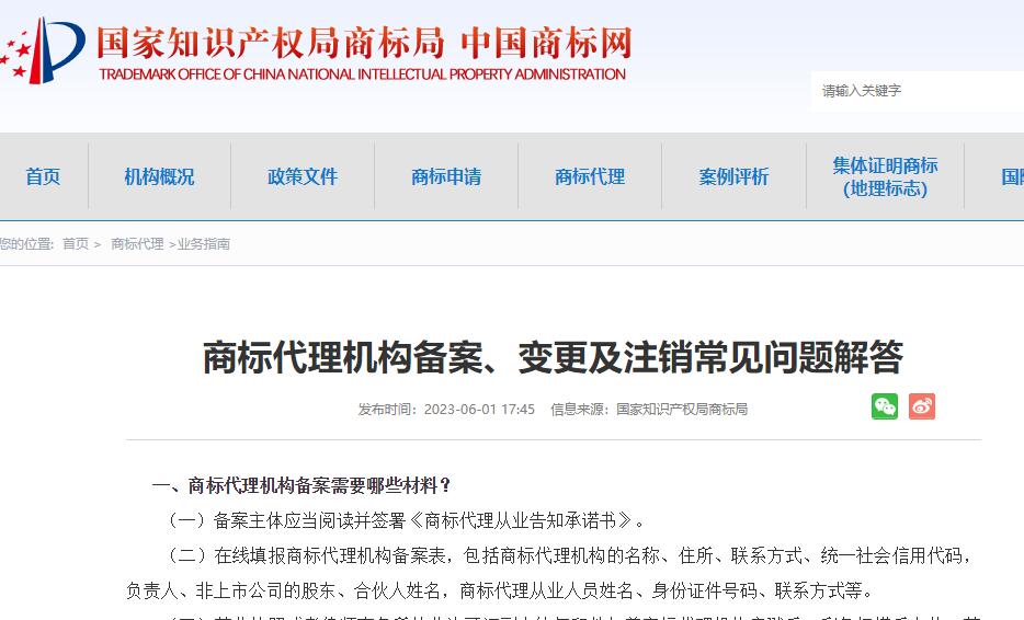 《商标代理机构备案办理须知》全文发布 | 附常见问题解答