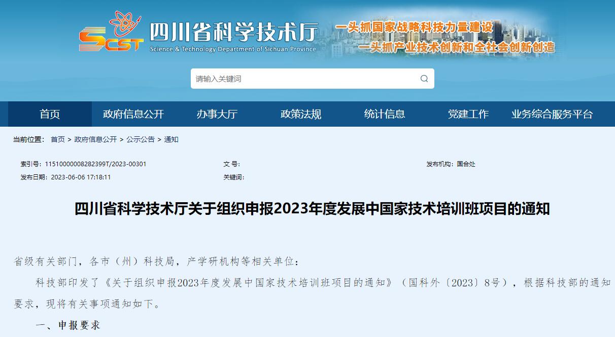 四川省科学技术厅关于组织申报2023年度发展中国家技术培训班项目的通知