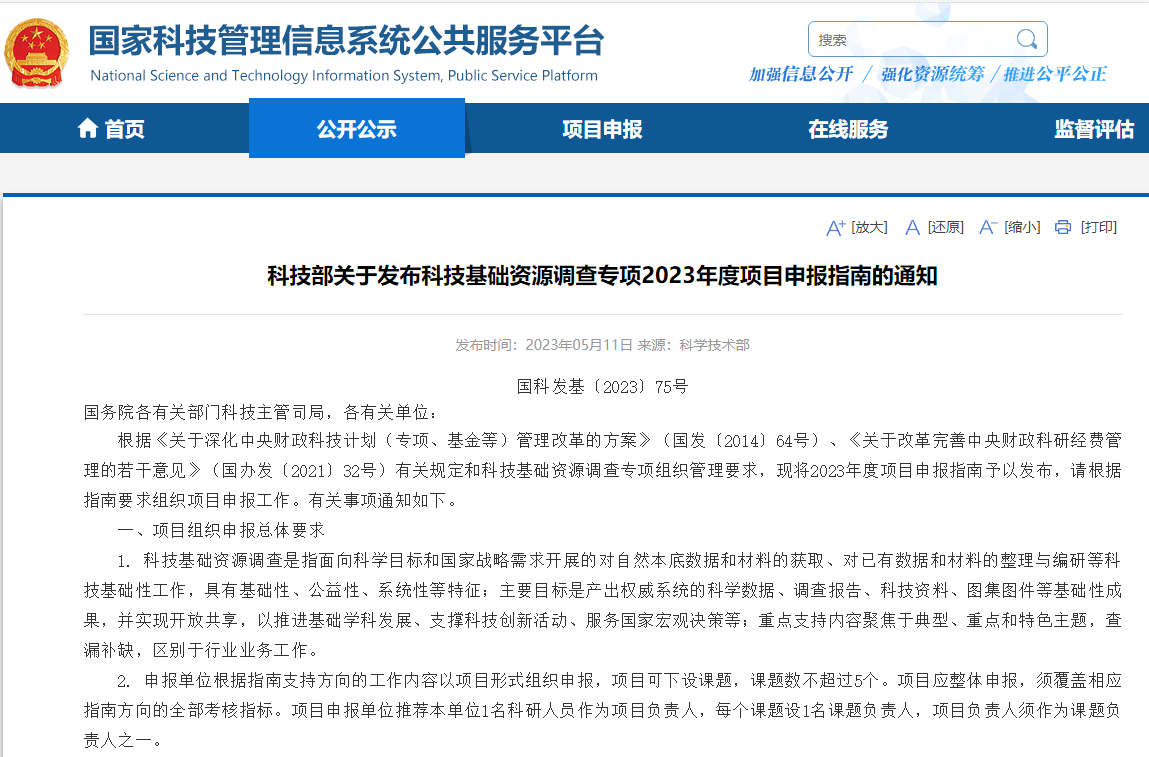 科技部发布:科技基础资源调查专项2023年度项目申报指南