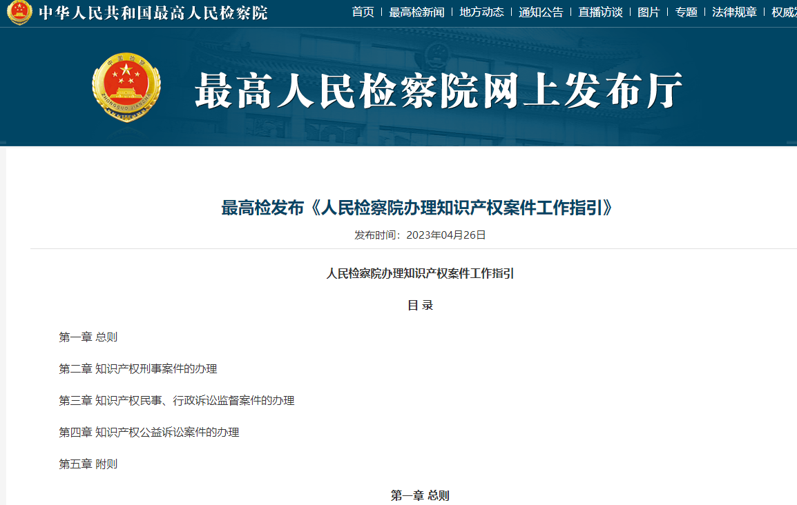 最高检发布《人民检察院办理知识产权案件工作指引》全文