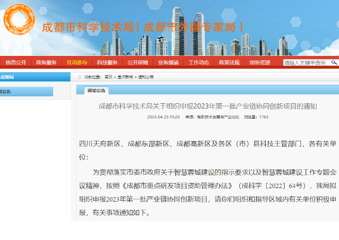 成都市科学技术局关于组织申报2023年第一批产业链协同创新项目的通知