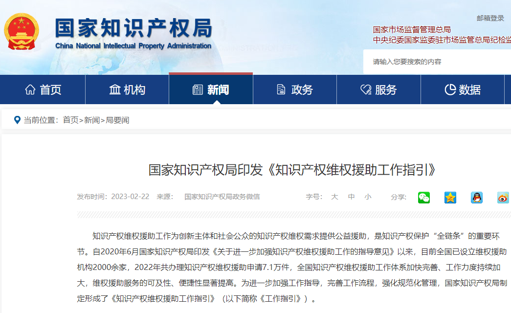 国家知识产权局印发《知识产权维权援助工作指引》