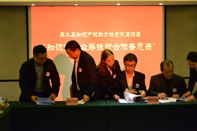 为突显知识产权众筹的积极作用,推进知识产权助推脱贫攻坚工作,2017年2月24日,由成都天嘉专利事务所、成都华风专利事务所联合主办的“黑水县知识产权助力扶贫攻坚项目‘知识产权众筹扶贫合作备忘录’签字活动”成功举行。四川省知识产权产权局专利管理处处长周丽萍、四川省知识产权局驻黑水县木日窝村第一书记谭喜明、成都泓奇实业股份有限公司、四川大学生命科学学院、成都叮当自动化设备有限公司等13家自愿参与众筹扶贫的企事业单位应邀参加了本次活动。