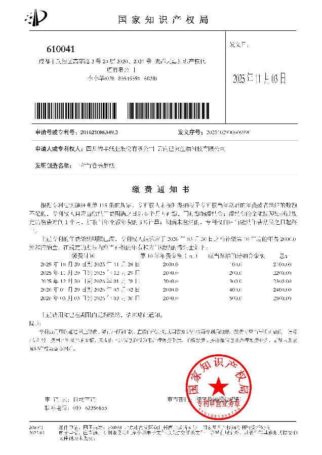 我公司于2025年11月03日收到国家知识产权局专利局发出的缴费通知书,且无法通过电话、微信和QQ等方式联系到您本人,请见本公告通知后,十日内与我所取得联系,以便妥善处理,否则造成专利权丧失或其他法律后果与本所无关,本公司已履行告知义务。